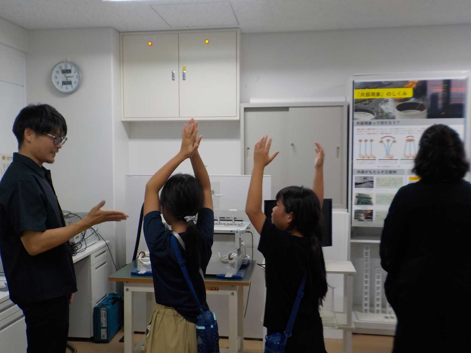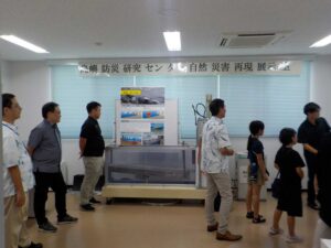 浦添市立宮城小学校関係者が島嶼防災研究センター展示室を見学 2025年12月16日 2025年8月28日、浦添市立宮城小学校の関係者が当センター展示室を訪問され、教員(尾方隆幸・中村 衛・松原 仁)がそれぞれ地形・地震・地盤災害について解説しました。竜巻、液状化、共振現象については技術スタッフ模型を用いて説明しました。 NEWS一覧に戻る